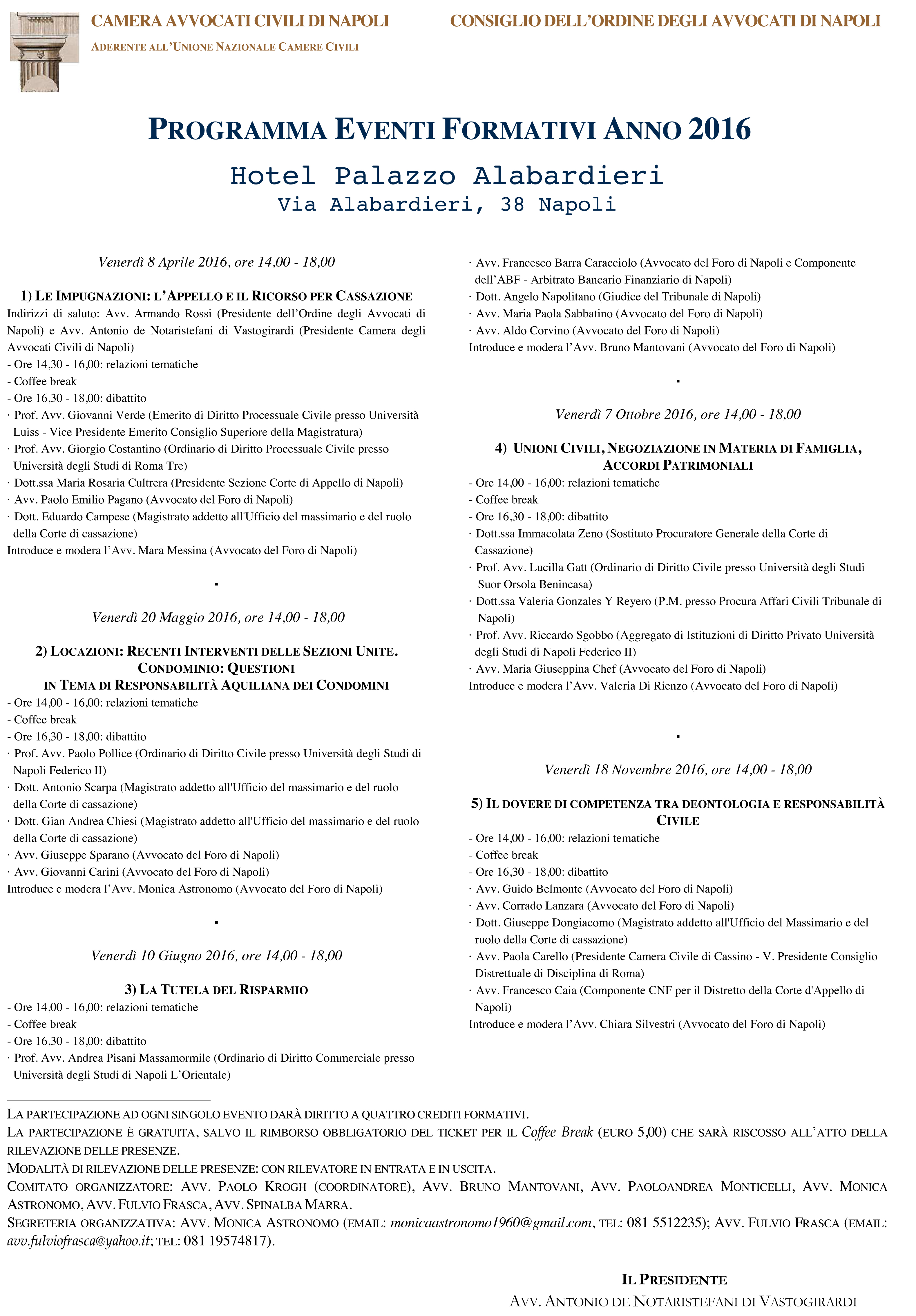 Camera Avvocati Civili di Napoli, Programma Eventi Formativi 2016 29 Settembre 2016 Link al programma